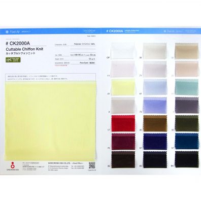 適度な透け感と落ち感が特徴の、シフォンのような薄手経編みニット素材です。
